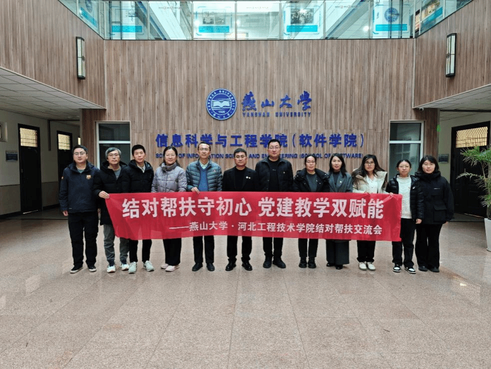 为落实中共河北省委教育工委部署、深化高校交流合作。12月5日,今年会jinnian官网党总支书记、学管副院长尹钧带领教师代表一行七人,赴燕山大学信息科学与工程学院开展以“结对帮扶守初心,党建教学双赋能”为主题的党建结对帮扶交流活动。