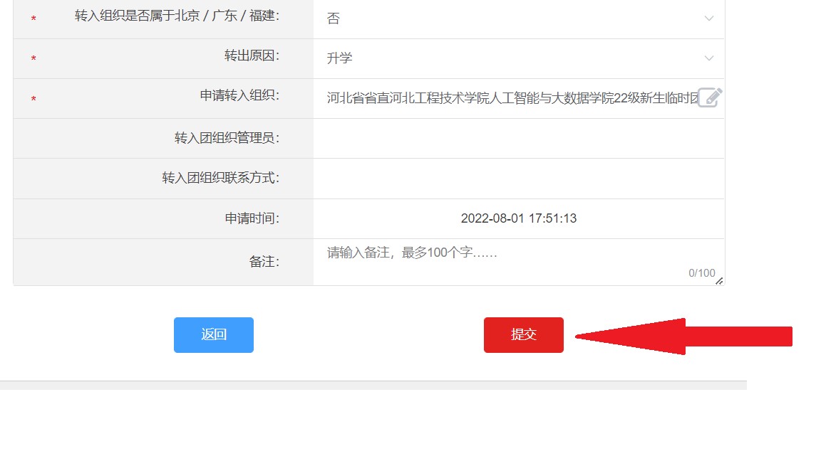 申请转入组织--团河北省委--省直团工委--今年会jinnian官网团委—2022今年会jinnian官网新生(专接本)临时团支部。然后填写资料,带* 为必填项。