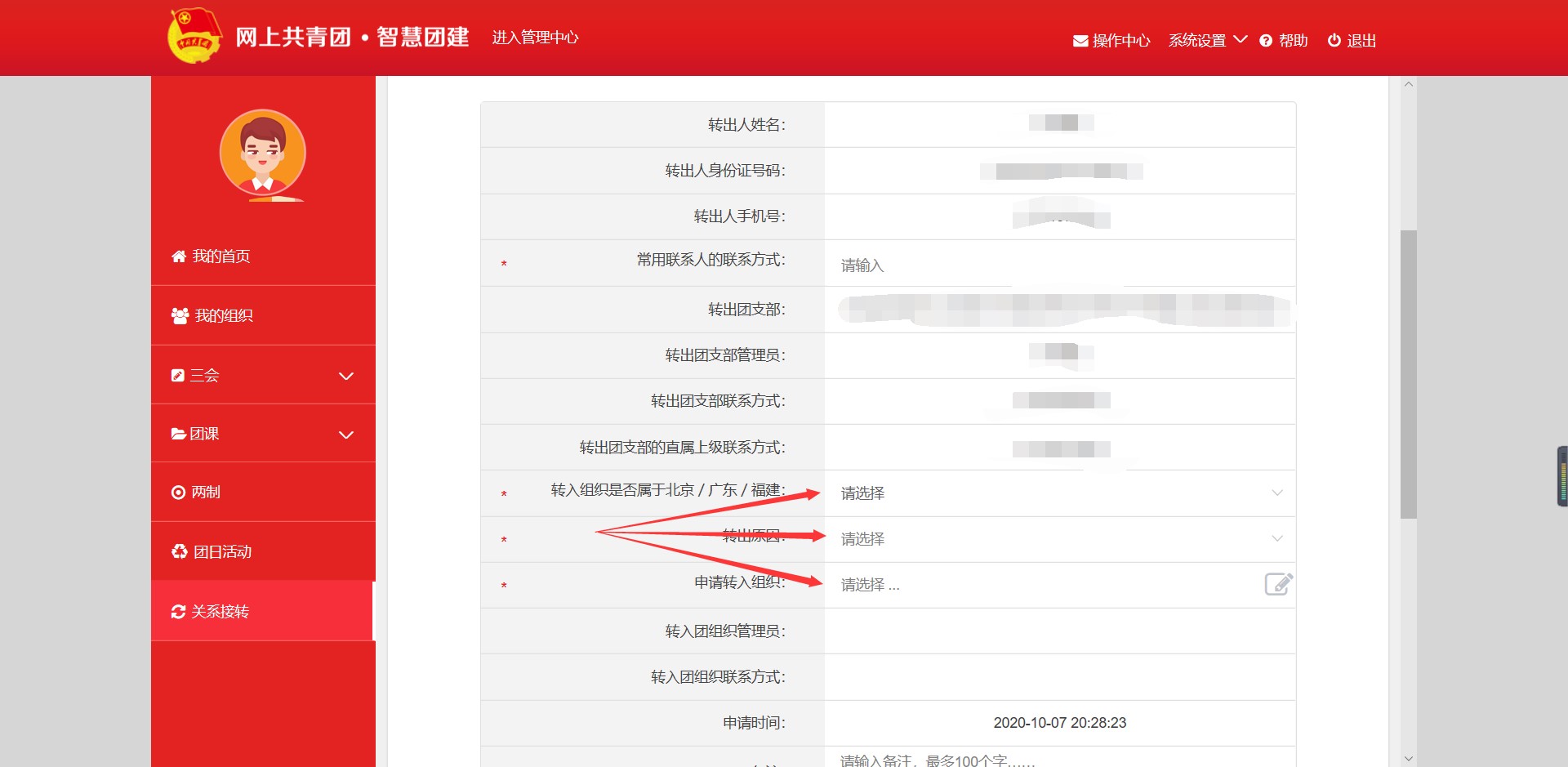 智慧团建关系接转流程图