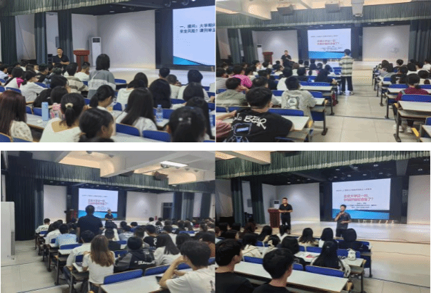 第一:“安全”,尹钧院长对于新生的到来表示欢迎和祝贺,希望他们在保证安全的情况下,进行学习和生活。安全风险有很多种,要特别注意消防隐患,交通事故,电信诈骗,意外伤害,突发 (染) 疾病 (病、残、身故),人际冲突(打架斗殴),恶劣天气,网络安全风险(财产受损、上当受骗、触犯法律)以及其他不可抗力等。