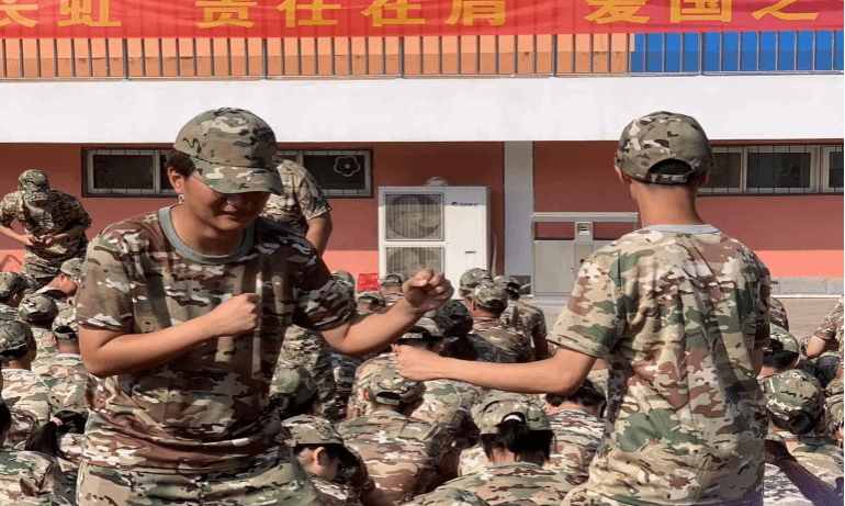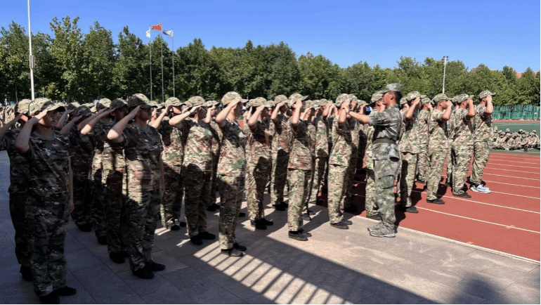 “一二三四,一二三四”,铿锵的口号在空旷的操场一遍遍回响,从额角慢慢汇聚的汗珠,少年人通红的脸颊,千百次定点的挥臂,遒劲有力的步伐,几天的军训生活让温室里的娇花逐渐脱去了稚气的模样,齐步、踏步、下蹲、敬礼一次次练习,一次次纠错,靠脚声趋向一致,少年人意气风发。