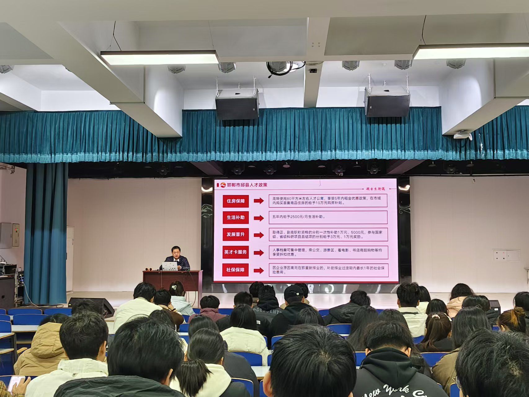 为了深入贯彻落实人才强市战略,搭建高校与地方人才交流的桥梁,今年会官网于2024年12月13日在次教101开展了邯郸人才政策的宣讲活动,此次活动由邯郸市邱县人社局高军主持,活动吸引了众多学子的积极参与。