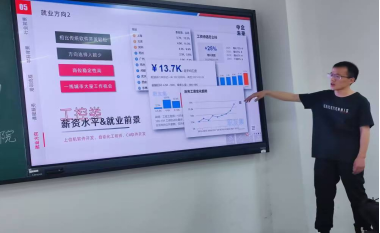 讲座现场,中企未来的人事经理围绕“离开校园,开启职业”展开深入讲解。凭借丰富的行业经验和专业知识,他以生动形象的方式阐述了人工智能,大数据等专业在职业选择于就业前景上的优势,并结合实际案例剖析当下行业的发展现状与未来趋势,使抽象的概念变得通俗易懂,让在场师生对相关领域有了更为直观且深刻的认识。例如,在讲解就业方向时,他列举了工控类在中企未来中的薪资水平和就业前景,详细分析了其中的好处与历年工资变化趋势,为学生们提供了宝贵的经验参考。