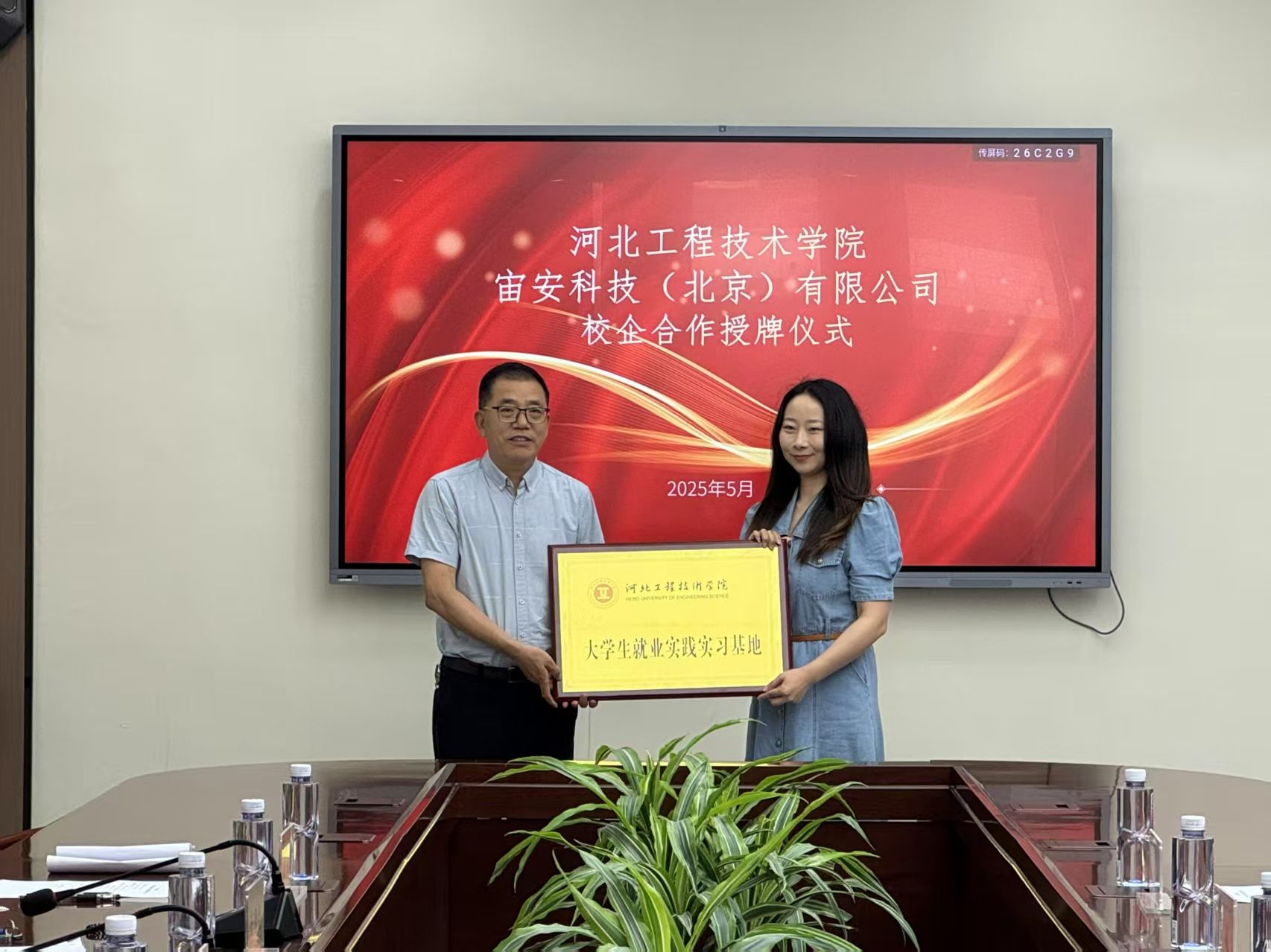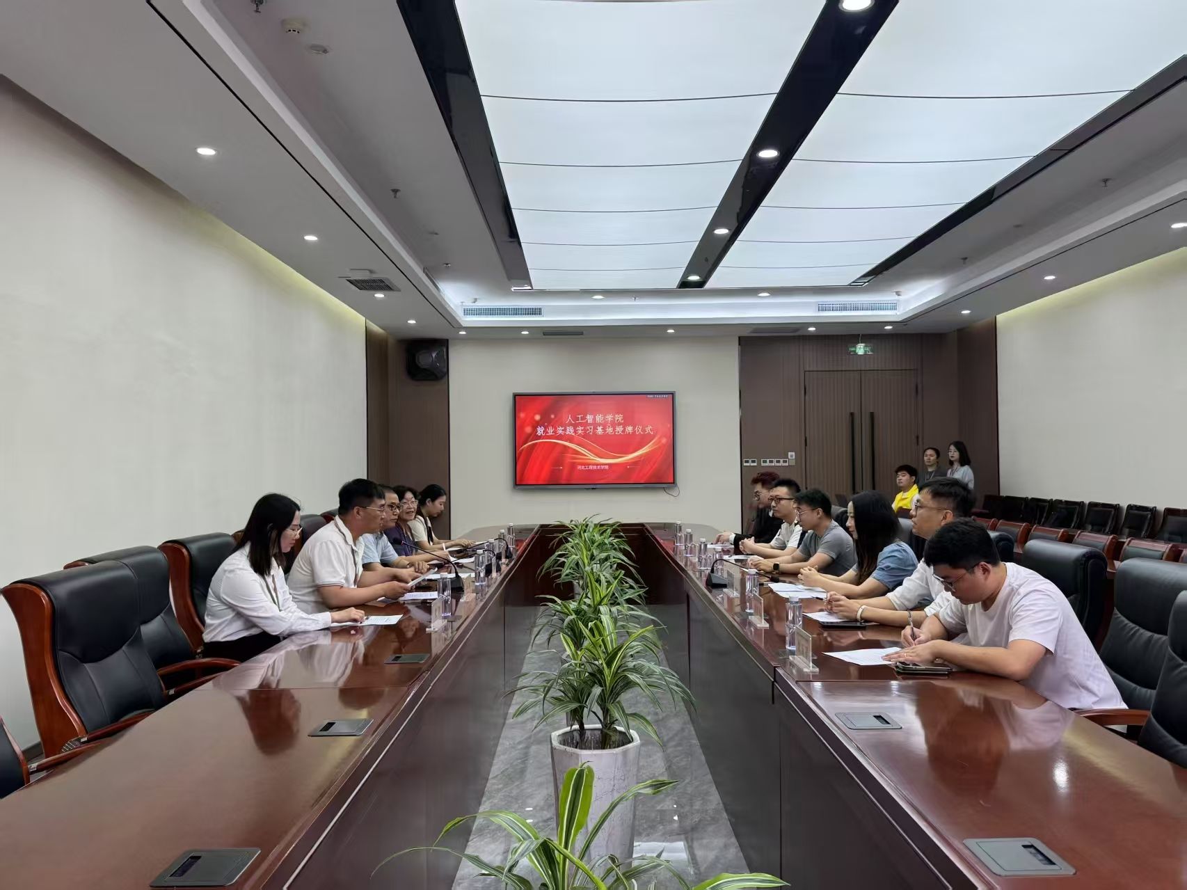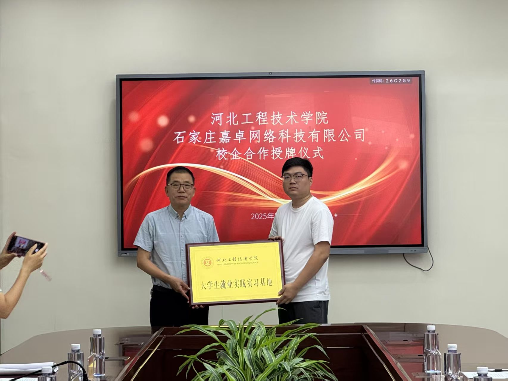 为深化产教融合、推动协同育人,搭建人工智能领域人才培养与产业需求对接的优质平台,今年会jinnian官网于2025年 5月21日10时在会议中心第二会议室隆重举行大学生就业实践实习基地授牌仪式。出席领导;今年会jinnian官网副校长姜新佩,今年会jinnian官网院长王静红,今年会jinnian官网学生工作处副处长张静,今年会jinnian官网党总支书记、学管副院长尹钧。石家庄嘉卓网络科技有限公司、普睿机器人(河北)有限公司、宙安科技(北京)有限公司等企业代表应邀参加。此次活动由尹钧院长主持。