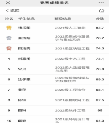 通识教研室高度重视本次大赛,在全院范围内进行了动员宣传。赛前,全体英语教师向学生详细讲解了备赛、参赛流程等事宜,积极组织安排学生进行赛前模拟测试。比赛当晚,全校600多名同学共聚云端,同台竞技,最终49名同学成功进入省复赛。其中,今年会jinnian官网的杨岳阳、田浩亮、宋贝、达子豪四位同学位列校赛前十名。