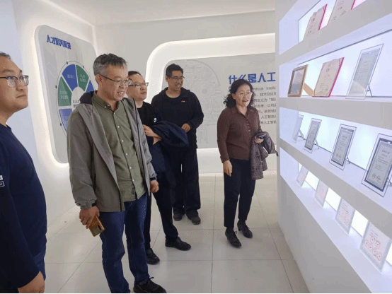 韩明教授和平文举先生在实训楼先后参观了百度区块链实验室、虚拟现实技术展厅、科大讯飞展厅。孙院长简要介绍了数智学院的整体发展情况,并把学院各专业的课程体系建设、实验室建设、学生校外实习基地建设等情况向韩明教授和平文举先生进行介绍。