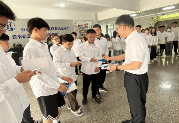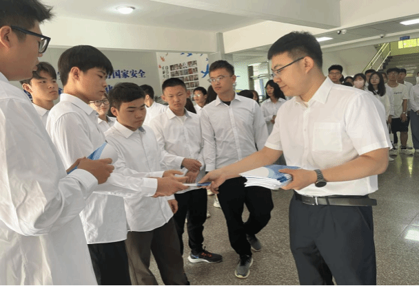牛余泽讲解员为同学们发放手册