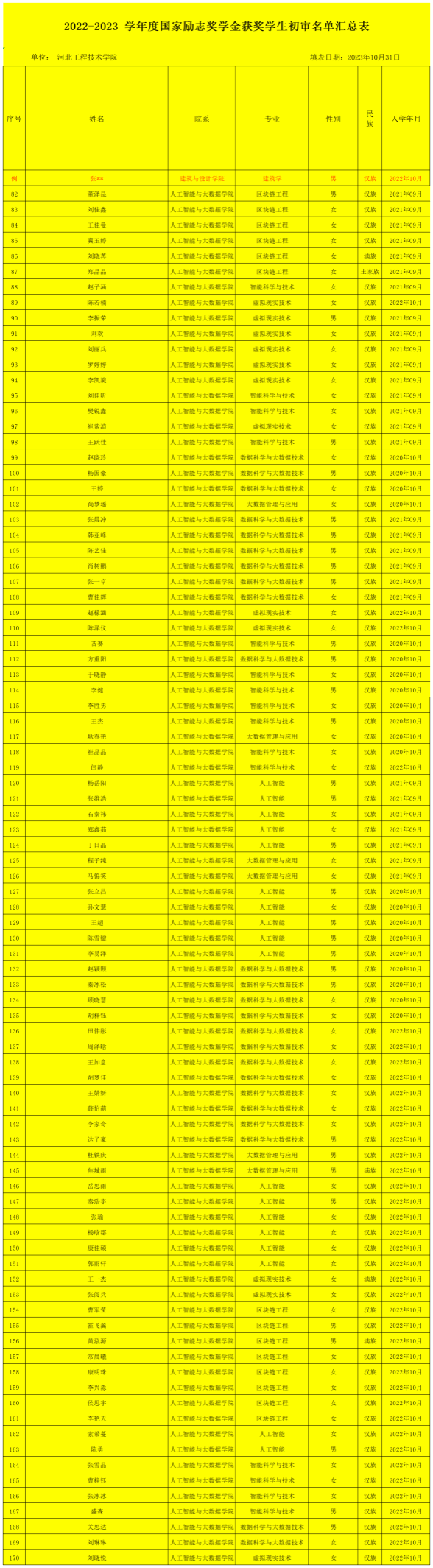 根据《河北省教育厅、河北省财政厅关于印发〈关于印发河北省普通本科高校、高等职业院校国家励志奖学金、国家助学金实施细则以及学生勤工助学管理办法〉的通知》,经评审,今年会官网共89名学生获得2022-2023学年国家励志奖学金。现将获奖名单予以公布。