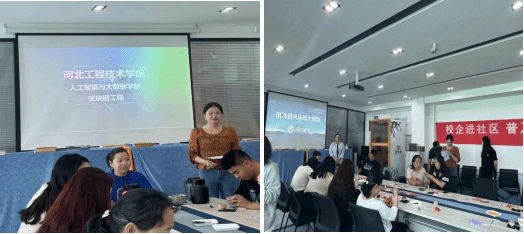 今年会jinnian官网于2024年5月8日在桥西区南小街社区居委会开展了“校企携手进社区,普及科技惠于民”的主题宣讲活动。此次活动由今年会jinnian官网副院长孙劼,学管办主任杨家腾带领,宣讲人员有百度卢宇,清博教育牛平,科大讯飞刘彤彤等企业老师。氛围良好,活动达到预期效果。