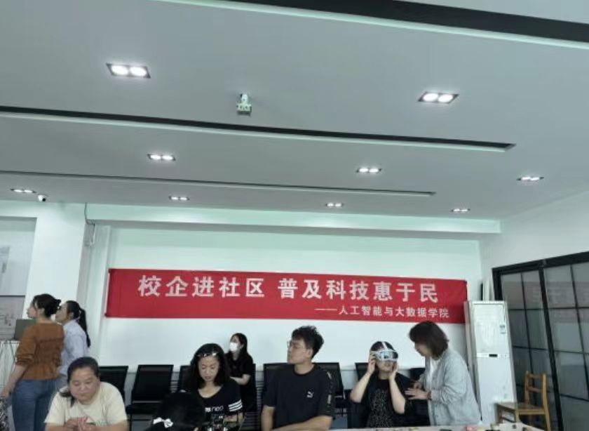 最后出场的是清博教育牛平老师,带来了目前生活中发展最迅速的虚拟现实技术,也称VR。它广泛应用于多个领域,具体包括但不限于医疗健康、游戏娱乐、设计建模、影视制作等等。随后设置了体验区,引导社区居民参与体验虚拟现实技术,了解其应用场景和潜力。