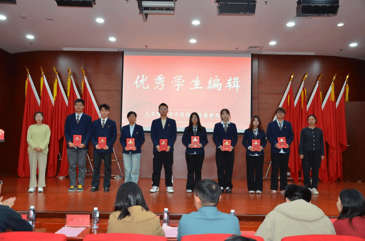 大会颁发了体育之星,志愿之星、劳动之星,优秀学生编辑、运营、剪辑奖,优秀信息员、技术员、联络员奖以及优秀社会实践团队奖等多个奖项。受表彰师生按顺序依次登台领奖,每一个奖项的颁发都伴随着热烈的掌声,现场气氛热烈而庄重。