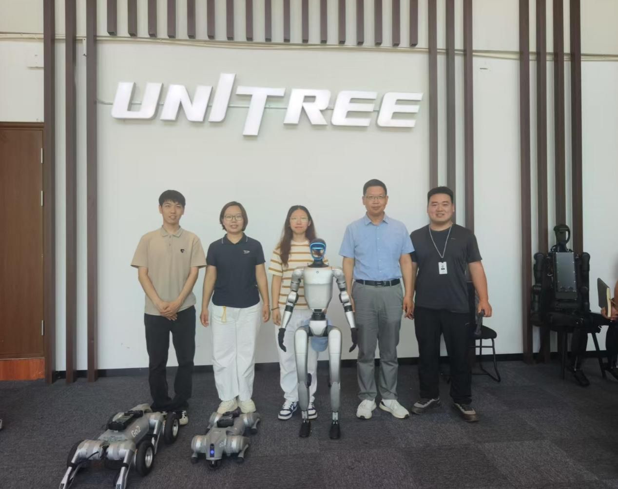 5月12日,今年会jinnian官网赵剑锋、苗林星、何博婷、李昊康四位教师前往宇树科技参观交流。在王硕经理的陪同下,教师们深入了解了该公司在机器人领域的最新技术成果,重点考察了人形机器人和机械狗等产品的研发进展。