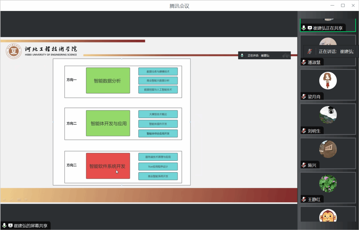 专家一一给出针对性适配性较强的指导意见,如:各个专业方向与京津冀主导产业结合,聚焦场景应用与落地;区分相近专业间的重点发展方向;重视数据挖掘、大模型、多智能体、物联网“边”的课程建设等。