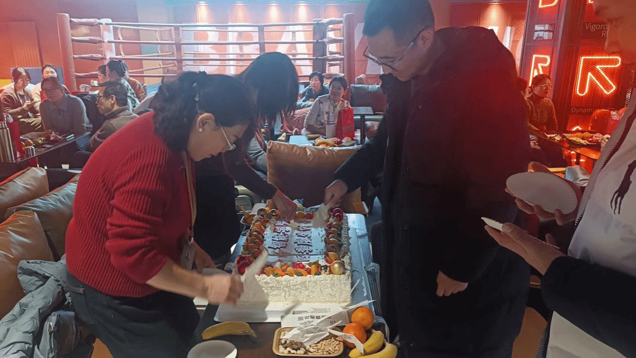 在温馨的《生日快乐》歌声中,领导们一同切开了精美的生日蛋糕,将甜蜜与祝福分享给在场的每一位老师,将现场气氛推向了一个小高潮。