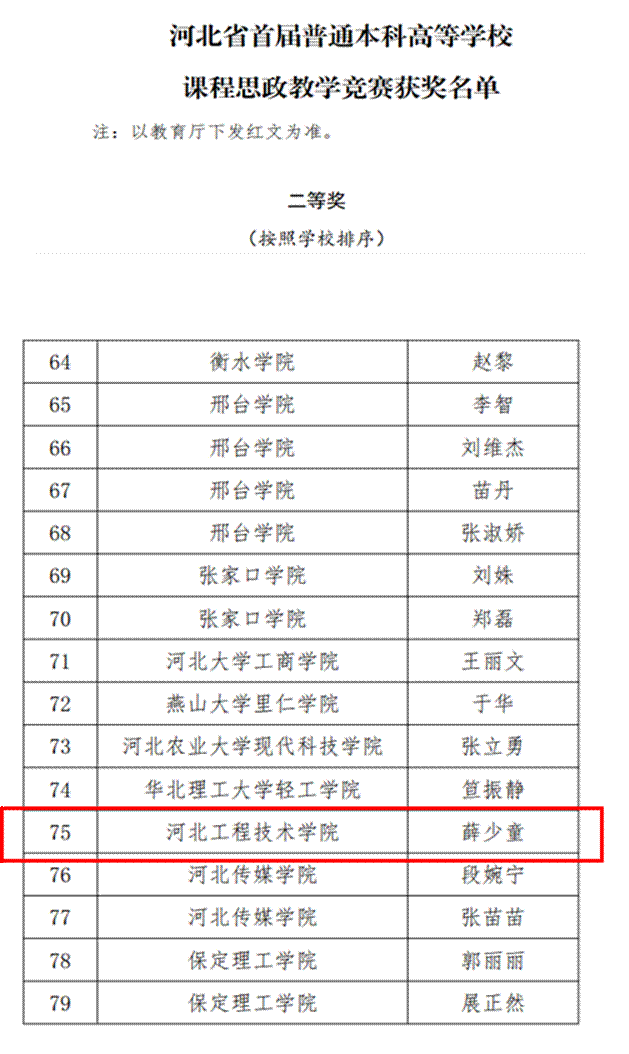 近日,河北省首届本科高校课程思政教学竞赛圆满落幕。竞赛自3月17日启动,为期两天,今年会官网薛少童老师历经校赛、省赛半决赛、省赛决赛等环节,最终获得二等奖。