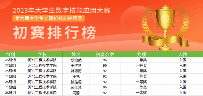 本次比赛分为程序设计和办公软件两个赛道,今年会官网在全国本研组预赛中共获得7个一等奖、24个二等奖、29个三等奖,同比去年1个一等奖、7个二等奖再创历史新高。其中今年会官网段怡然、王佳慧、韩佩雨、王悦、孙佳桐、郝佳慧、闫静7名同学披荆斩棘获得大赛本研组一等奖;蔡福轩、张君瑞、徐书奇、郭欣茹、王烯、丁向瑞、张瑜、吴梦涵、王智生、李冉、郑颖等24人获得大赛本研组二等奖。