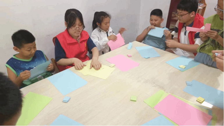 在志愿服务过程中,郭栩恺体会到了与孩子们交流的快乐以及与孩子们一起完成任务的这种喜悦。完成任务的孩子们也会有对应的奖励,孩子们就有了目标有了动力,在第一天,刚开始的时候郭栩恺会跟他们商讨先完成任务,完成任务后再一起玩。他们也认同,随后为他们布置了作文,他们也欣然接受了,之后便奋笔直书,不一会就完成了任务。之后来到了活动环节,志愿者们会教他们做小实验以及一些折纸还有涂鸦等等,在经过几天的志愿服务,孩子们跟我们熟起来,他们会耍一些小机灵,在写数学题的过程中时不时的会跟你聊一些奇奇怪怪的知识,会对一些小东西发挥象形力,这一刻,郭栩恺体会到了小孩子们的发散思维,大家其乐融融,最后也完成了任务。他们很开心的回家了,看着他们回家的身影,郭栩恺和其他志愿者们也感觉很快乐。