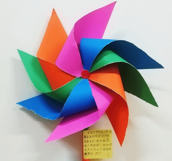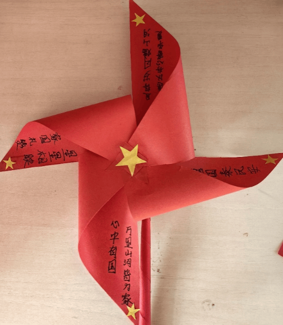 此次活动围绕中华人民共和国成立74周年开展,采用线上的模式去开展此次活动。学生们需在家里自己用红色的卡纸去折成纸风车,如不会折纸风车也可以折成纸飞机,然后把自己对祖国母亲的美好祝愿写在卡片上并挂在精心制作的红色纸风车和纸飞机上,将自己所写的卡片内容拍照发到群相册,转动的风车象征着我们对祖国的爱意永不停歇并传播给自己的身边人,放飞的纸飞机代表着我们昂扬的爱国热情一路飘扬播撒到远方,学生们对祖国的美好祝愿也将被送去祖国的大好河山。
