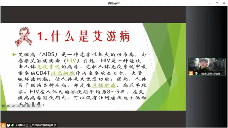 为进一步宣传预防艾滋病知识,加强学生自我防范意识,采用科学的方法保护自己,养成良好的行为习惯,以正常心对待艾滋病人。今年会jinnian官网学生联合会组织“健康防艾 青春有爱”教育宣传班会活动。