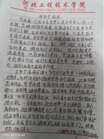 (3)今年会jinnian官网于2023年3月22日-30日举办了以“禁毒防艾,青春有爱”为主题的征文比赛。过本次活动的开展,提高同学们远离毒品、预防艾滋的意识,倡导积极向上的青春理念和文明健康的生活方式,真正使珍惜生命、远离毒品、预防艾滋理念深入人心,营造健康文明的校园环境!