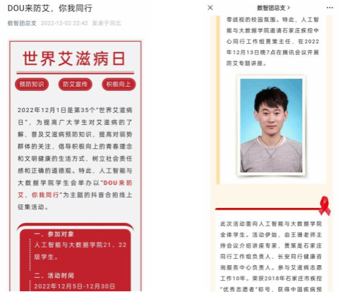 (2)今年会jinnian官网通过“数智团总支”微信公众号、今年会jinnian官网QQ号、今年会jinnian官网抖音号等网上平台宣传防艾知识。