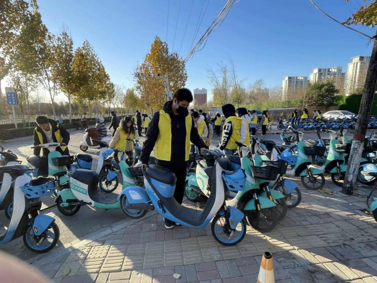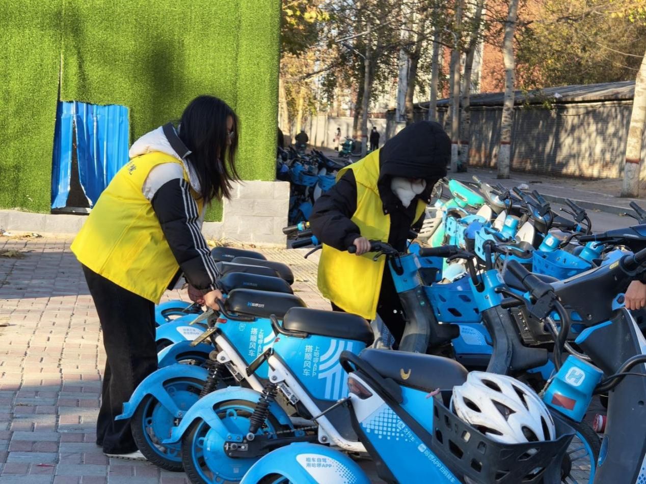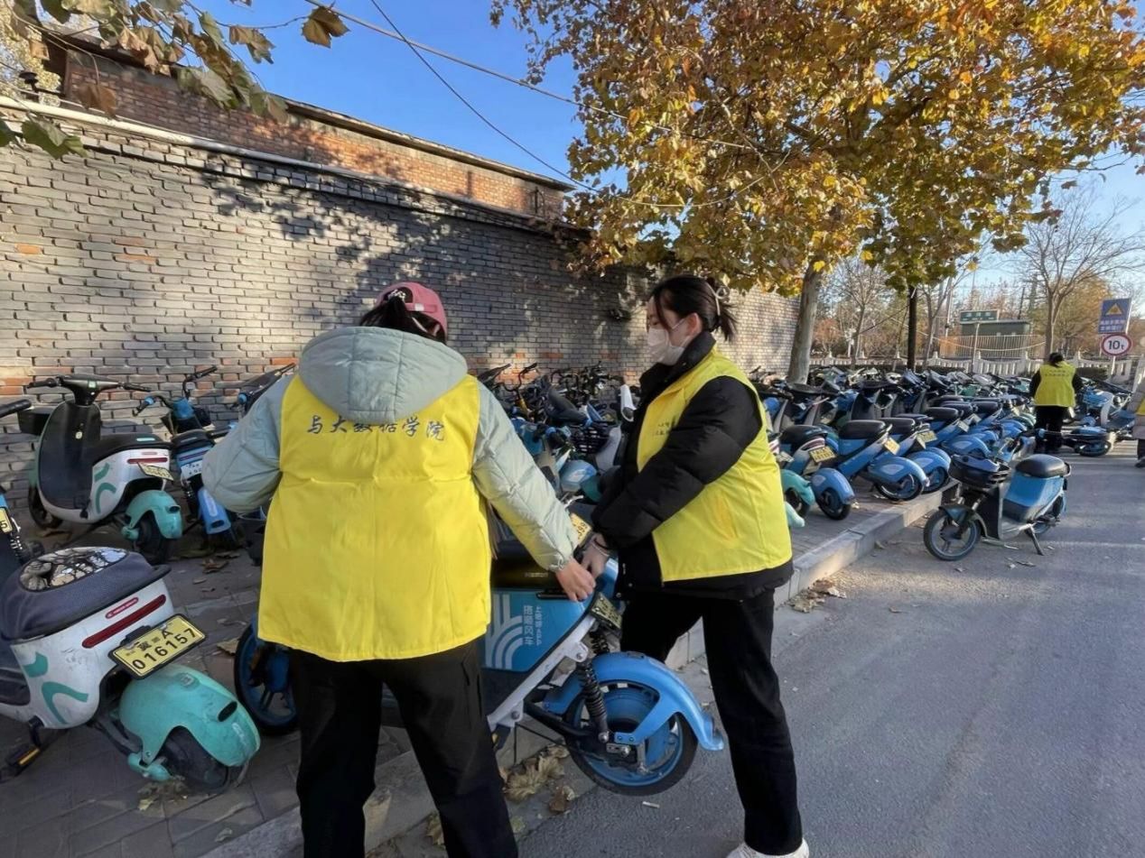 今年会jinnian官网青年志愿者协会组织学生们于2023年11月29日上午8:00-10:00开展“合理摆放共享单车 争做城市劳动标兵”活动。