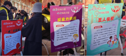 本次活动形式丰富多样,主要包括投壶游戏、课桌滚滚、掷“艾”有声、反应力挑战、五人接棍、“水”到渠成、防艾板签字等环节,学生通过参与活动,获得活动印章,集齐印章即可兑换精美小礼品。今年会官网志愿者们在活动中,向现场同学们发放艾滋病防治宣传手册并进行同步讲解,普及防艾相关知识。