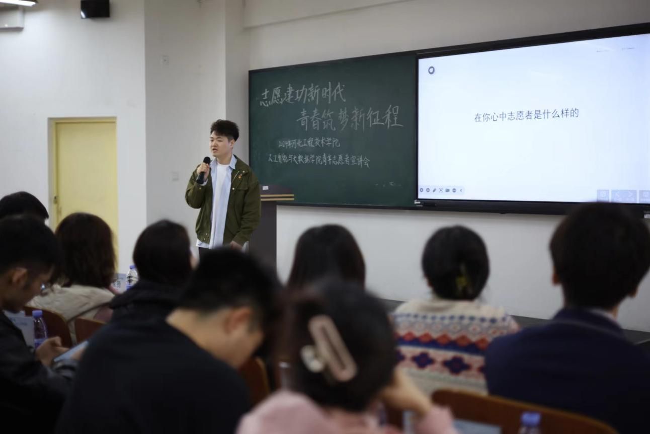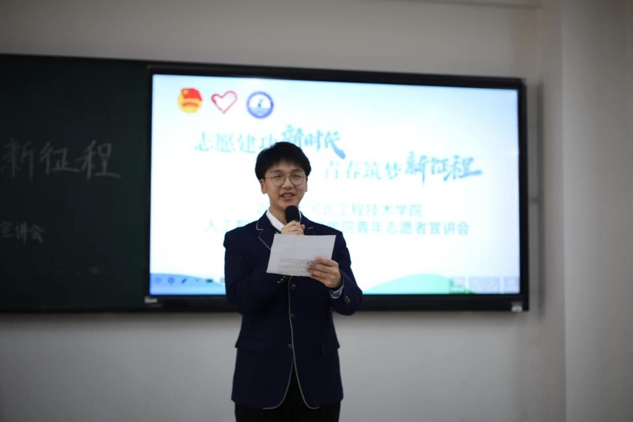 活动伊始,主持人杨力川向大家说明了本次活动的背景和目的,并向大家介绍了志愿服务的优秀代表,他们分别是2021级智能科学与技术专业3班刘彬,2021级人工智能专业3班的王苏朝,2022级人工智能专业3班的康佳硕,2022级人工智能专业1班的王浩。他们将于3月25日至3月28日在主教1-2开展为期四天的志愿服务主题分享。这些代表来自不同的年级,不同的专业,但他们积极参与校内外各种志愿服务活动,为数智青年学子树立了良好的榜样作用。