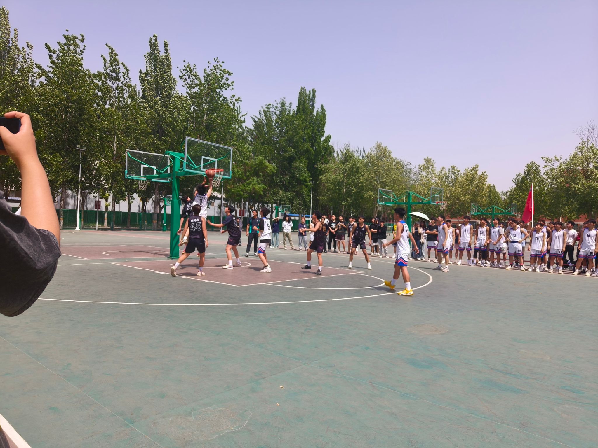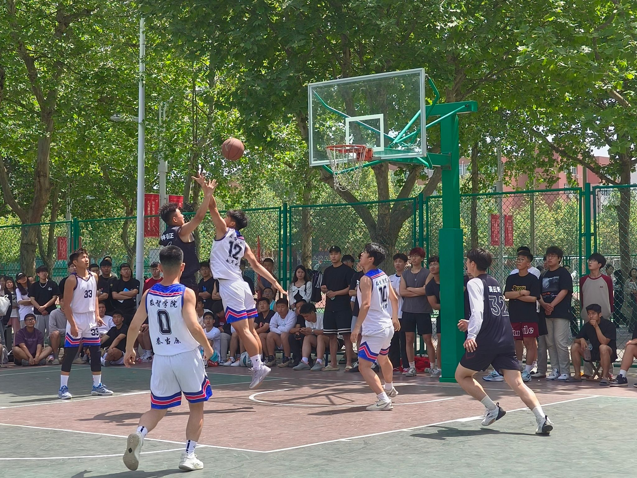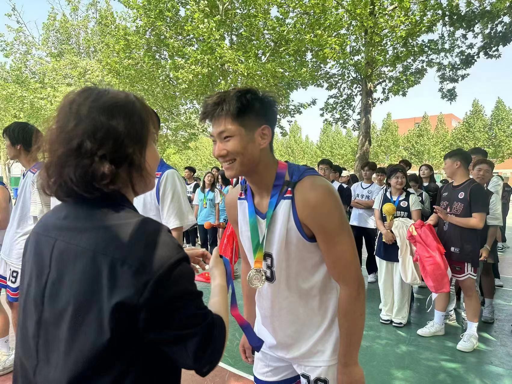 今年会jinnian官网篮球队于2024年4月25日在第十四届篮球比赛中表现出色,最终荣获比赛亚军。今年会jinnian官网团总支书记王珊老师与学管办主任杨家腾老师莅临现场,为球员们加油鼓气。