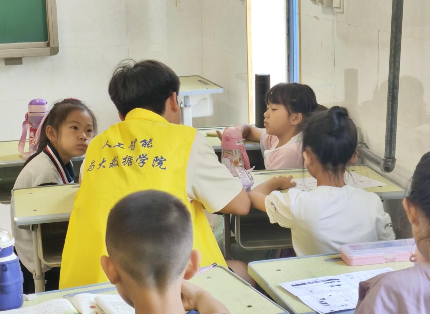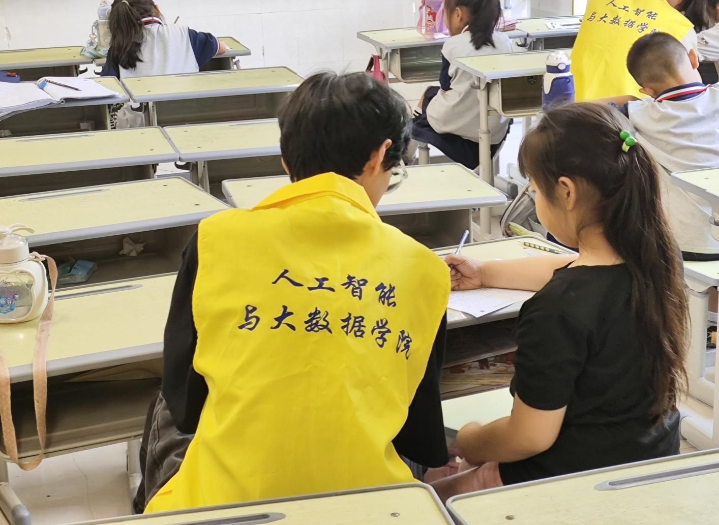 同时,志愿者们还主动承担起清洁教室的责任,通过他们的辛勤努力,为孩子们营造了一个干净整洁的学习空间。志愿者们认真清扫每一个角落,确保教室的卫生标准得以提升,同时也在潜移默化中教育孩子们维护环境卫生、增强环保意识和承担责任的重要性。