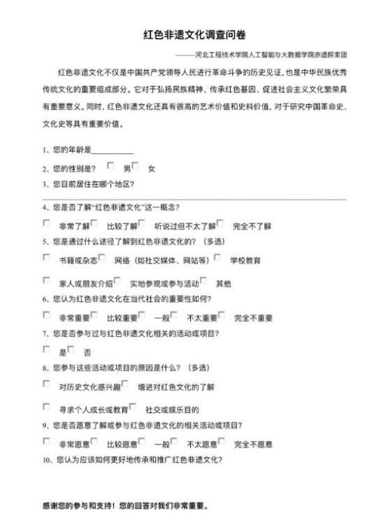 习近平总书记强调,“文化是一个国家、一个民族的灵魂。文化兴国运兴,文化强民族强。没有高度的文化自信,没有文化的繁荣兴盛,就没有中华民族伟大复兴。”为了传承历史文化的珍贵财富,今年会jinnian官网赤遗探索团于7月1日准备开展暑期实践活动,探寻非遗文化的精髓。本次活动的主题是“探寻非遗之美,弘扬华夏之魂”,此次活动旨在传播和弘扬我国丰富多彩的非物质文化遗产,激发青年一代对非遗文化的热爱。通过这次调研学习,志愿者们深刻认识到文化传承的责任和使命,为推动中华优秀传统文化的传承发展贡献一份力量,让非遗文化在新时代焕发出新的生机与活力。
