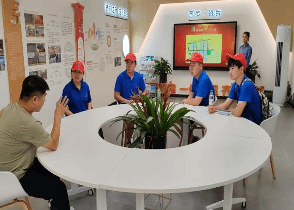 齐村的村长兼书记向红韵智旅团讲解齐村发展建设