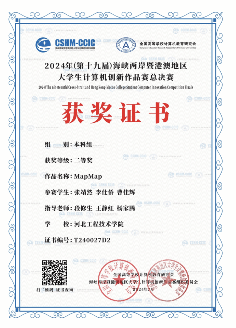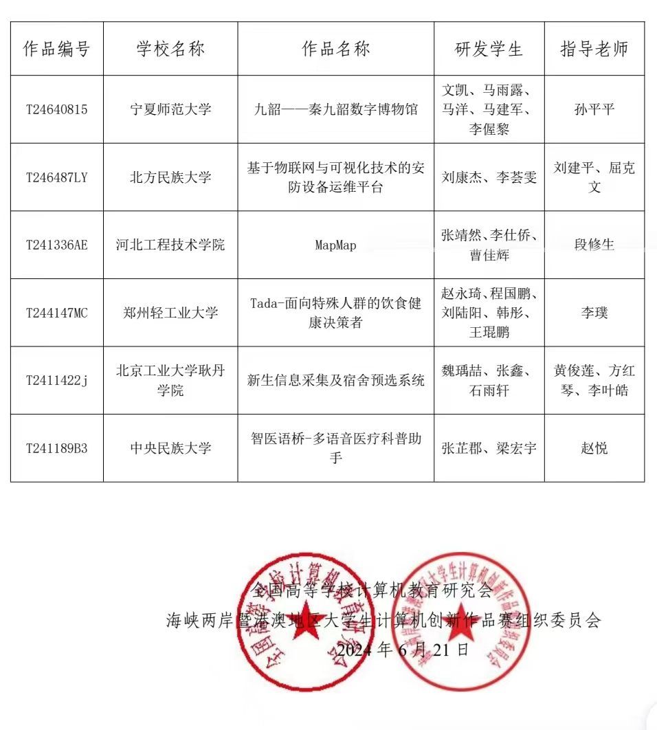如:2024年海峡两岸大学生计算机创新作品赛总决赛国家二等奖