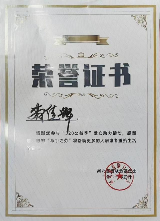 2021年“520公益季”爱心助力活动获得省级志愿证书
