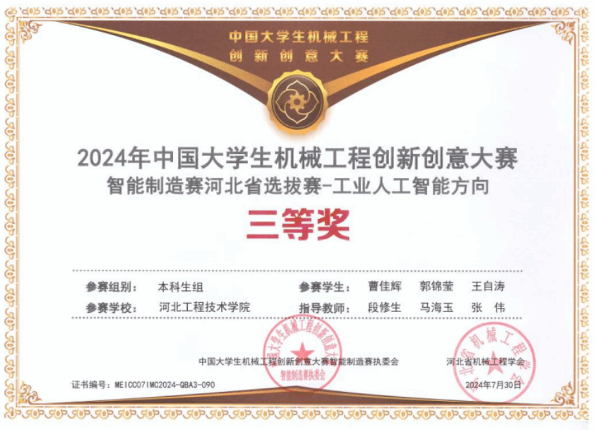 2024年中国大学生机械工程创新创意大赛省级三等奖