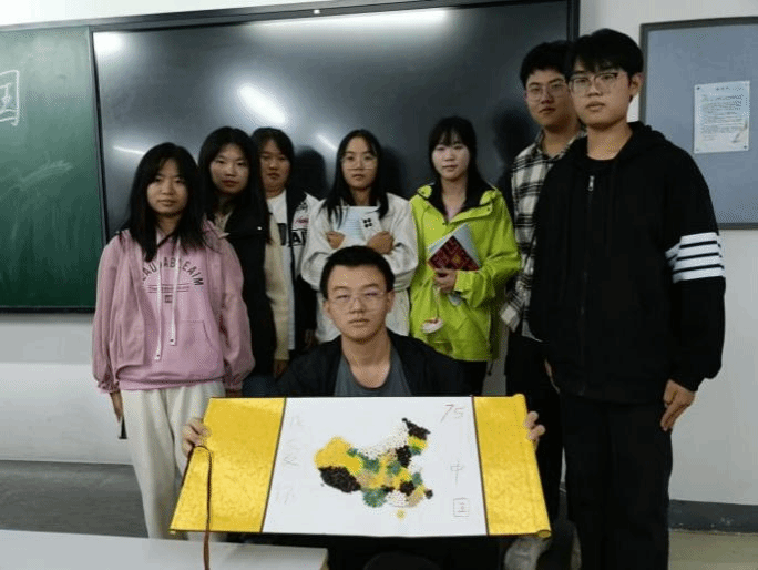 活动以庆祝祖国75周年华诞为契机,通过谷物作画的独特形式,激发学生的爱国热情与创造力。学生们自由组队,分成四个小组,以团队合作的方式投入到创作中。