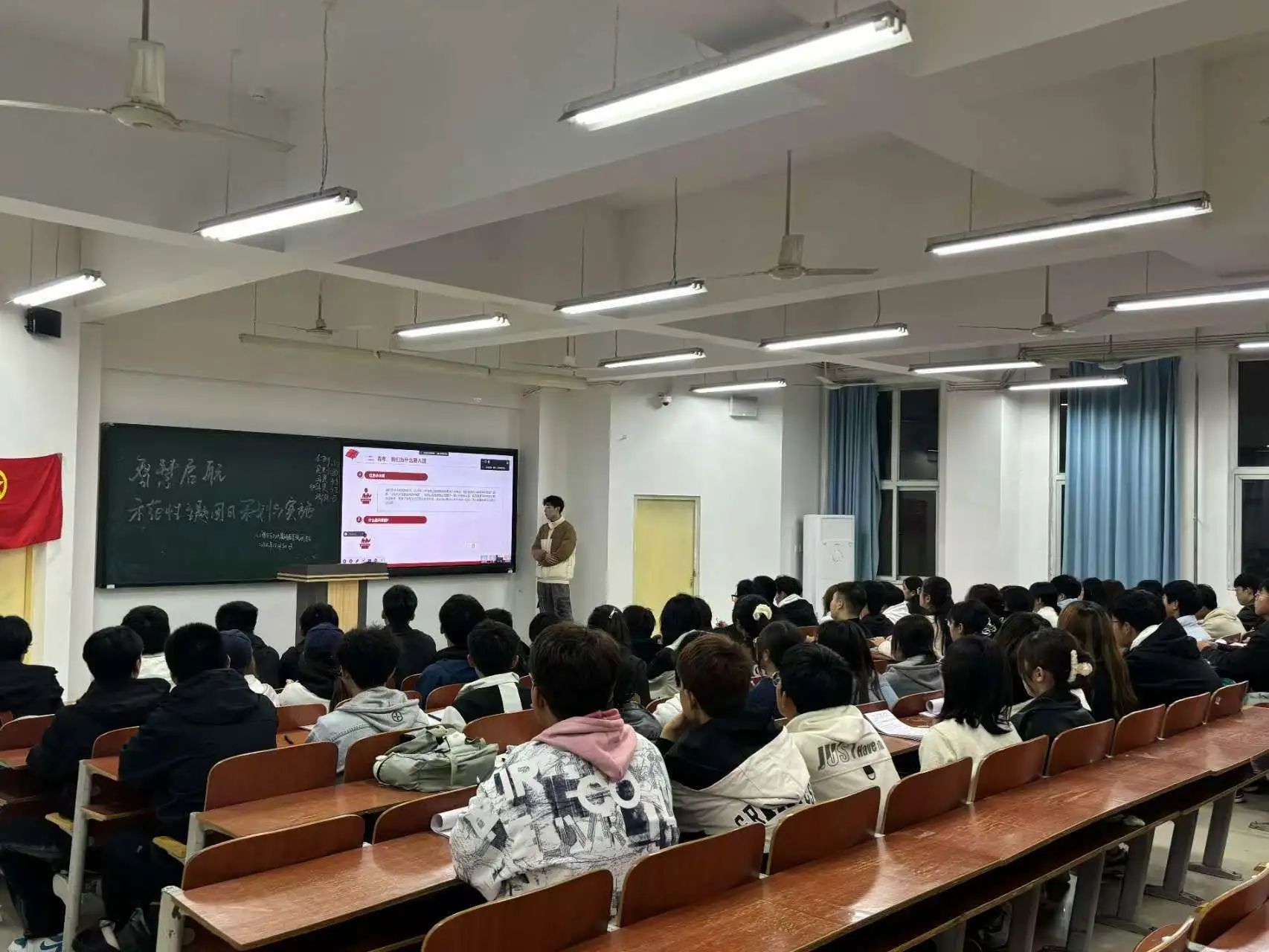 活动伊始,为加深学员对团课内容的理解,陈漠在黑板上列出十六个与中国共产党紧密相关的问题,这些问题围绕着党的发展历程、伟大成就等方面展开,学员们认真思考、积极求解。陈漠点明此次培训的主题是“接青春之火,续百年荣光”,希望学员们在思考问题的过程中能深刻领悟这一主题的内涵,为后续深入学习党团知识和团日活动策划做好铺垫。同时,通过对这些问题的探讨,引导学员们思考党团发展与自身青春使命之间的紧密联系,激发大家的学习热情和责任感。