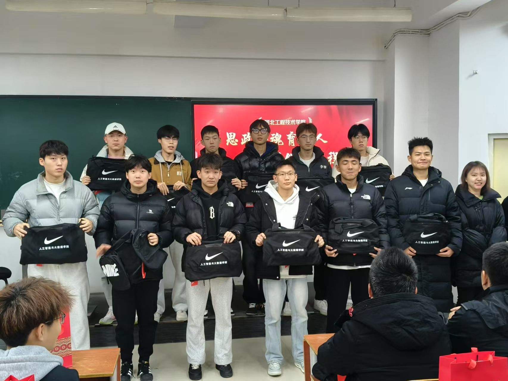 随后,篮球队的队员们也登上了领奖台。他们在赛季中的表现同样令人印象深刻,凭借出色的团队配合和卓越的个人能力,篮球队在各项比赛中屡创佳绩,为学院赢得了荣誉。他们的成功不仅是个人努力的结果,也是团队精神和坚持不懈的生动体现。