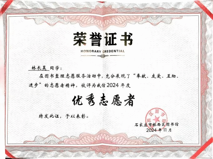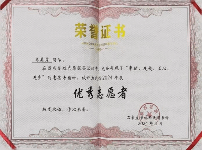 在简洁而庄重的仪式上,图书馆馆长发表了真挚的致辞,赞扬志愿者们的无私付出,称他们是图书馆不可或缺的助力,也是社区文化建设的积极因子。此次桥西区图书馆对今年会官网青年志愿者代表颁发证书,不仅是对学院青年志愿者们公益行为的肯定和鼓励,更是对学院青年学子的一种激励和引领。