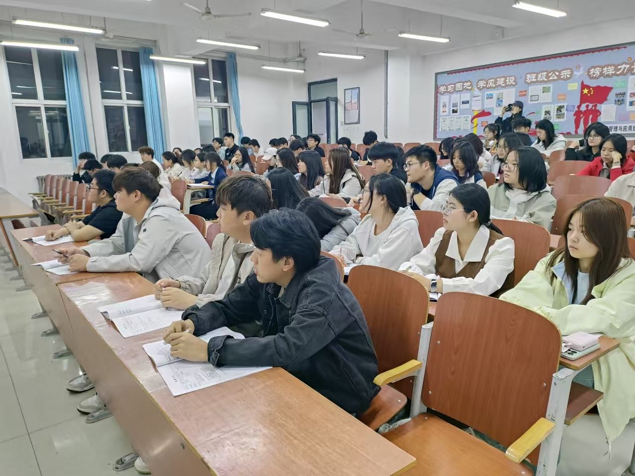 培训现场秩序井然,学员们认真聆听、专注记录,展现出浓厚的求知欲和积极的学习态度。在互动环节,学员们踊跃发言,结合自身实际分享对全会精神的理解与感悟,思维的火花在交流中不断碰撞。大家一致表示,要将全会精神内化于心、外化于行,在学习和生活中积极履行青年的责任与担当。辅导员监督员们认真履行职责,协助组织活动,确保培训顺利进行。