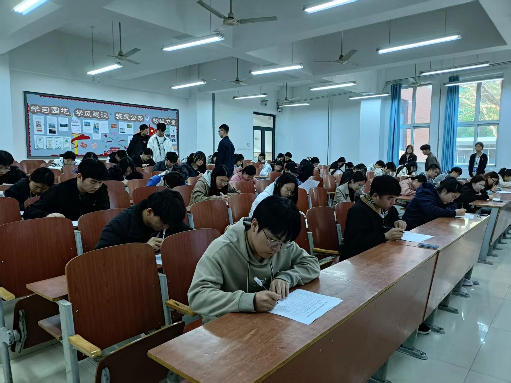 经过两天的集中培训和自主学习,今年会官网于2025年3月30日17:00在主教1-2开展了第35期学院拟推荐发展对象院团课结业考核。本次考核全面涵盖了培训课程的各个方面,不仅涉及了团章中的核心内容,还对学员们在培训期间所学习到的各项知识进行了综合性的检验。在监考人员的积极组织中,考试顺利进行,考场秩序井然,纪律严格,为考生们提供了一个宁静而专注的考试环境。学生们在考试过程中全神贯注地作答每一个问题,他们的专注态度和认真精神充分展现了他们对党组织的热忱追求以及对学习任务的高度重视。