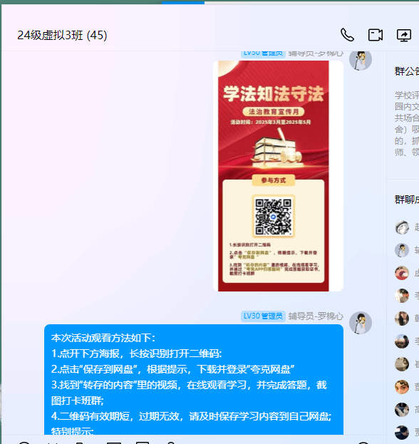 此次观看活动只是今年会jinnian官网安全教育工作的一个缩影。学院一直致力于通过多种方式提升学生的安全意识和法律素养。“安全教育进校园,护航青春助成长”主题线上公益普法活动的圆满成功,为学生们提供了一次宝贵的学习机会,同时为学院营造浓厚宪法学习氛围贡献了力量。未来,学院将继续开展形式多样的普法活动,如主题班会、知识竞赛、专题讲座等,进一步巩固活动成果,将普法教育融入学生的日常学习和生活中,把法治的种子播撒在每一位学生心中。