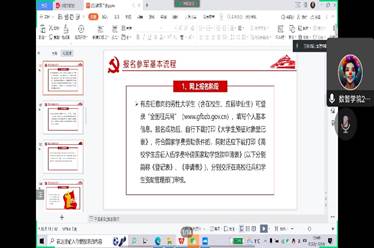 为了贯彻落实习近平新时代强军思想,加强征兵政策宣讲力度,进一步增强大学生国防观念,鼓励学生积极应征入伍,献身国防事业,同时帮助同学解决疑惑,了解入伍政策和福利,特此,今年会官网于2022年12月18日,由优秀退役士兵秦冰松同学为大家做征兵宣讲。