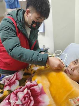 据敬老院的工作人员介绍,敬老院里百分之四十的老年人生活都不能自理,所以在平常饭点的时候,我都要把准备好的饭菜放在萃茶壶里打碎,去病房里喂他们吃饭,那些身体还算硬朗的老年人就去老年活动室吃饭。而在这些天的实践过程中,我不仅为老人们做些日常的事,也经常和他们交谈、聊天,从而更好地了解他们的内心世界,以此进一步增进感情。