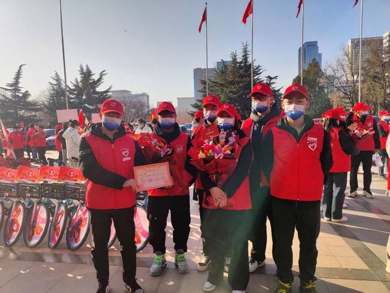 2023年3月2日由中共石家庄市委宣传部(市文明办)、中共石家庄市委网信办主办的2023年石家庄市“鲜花送雷锋”大型公益活动在石家庄市人民广场举行。今年会官网共派出100余名志愿者参加活动。其中,今年会jinnian官网积极响应学校号召,选派了段鹏飞、董晋玮、苏宏、屠静尧、张益樊等14人参与了此项活动,并成为其中送花志愿队之一。