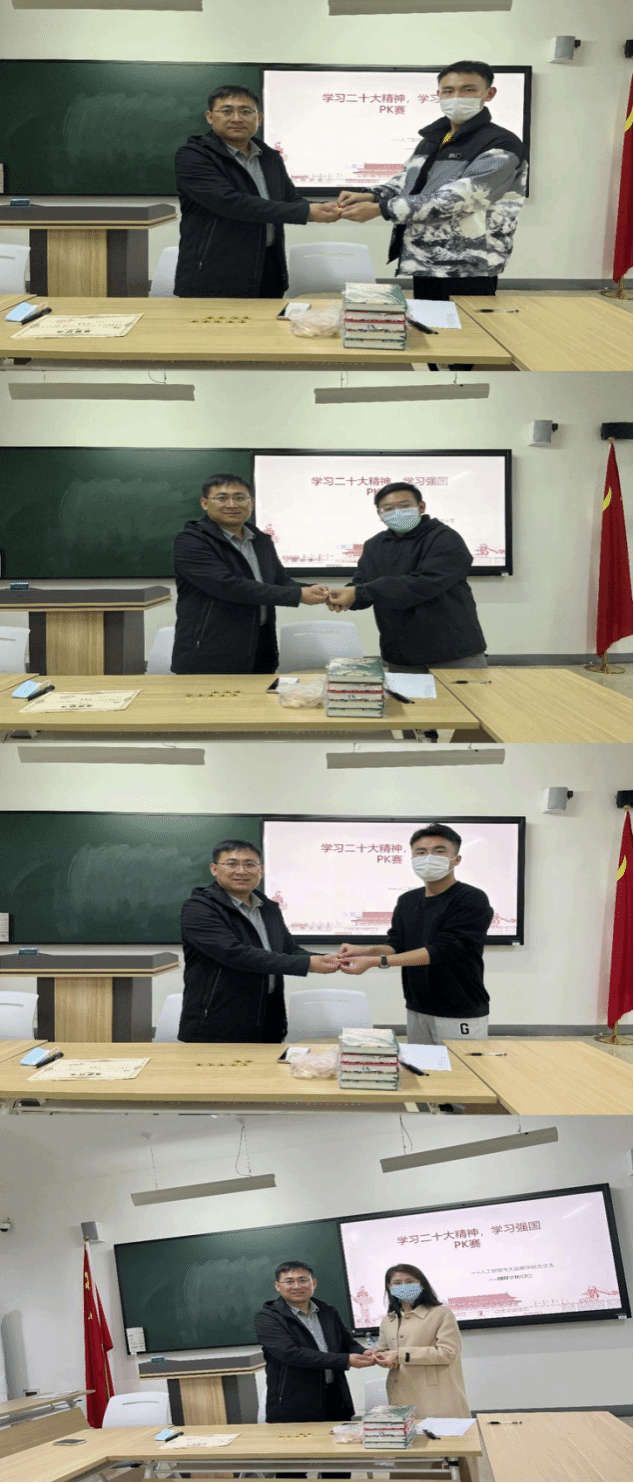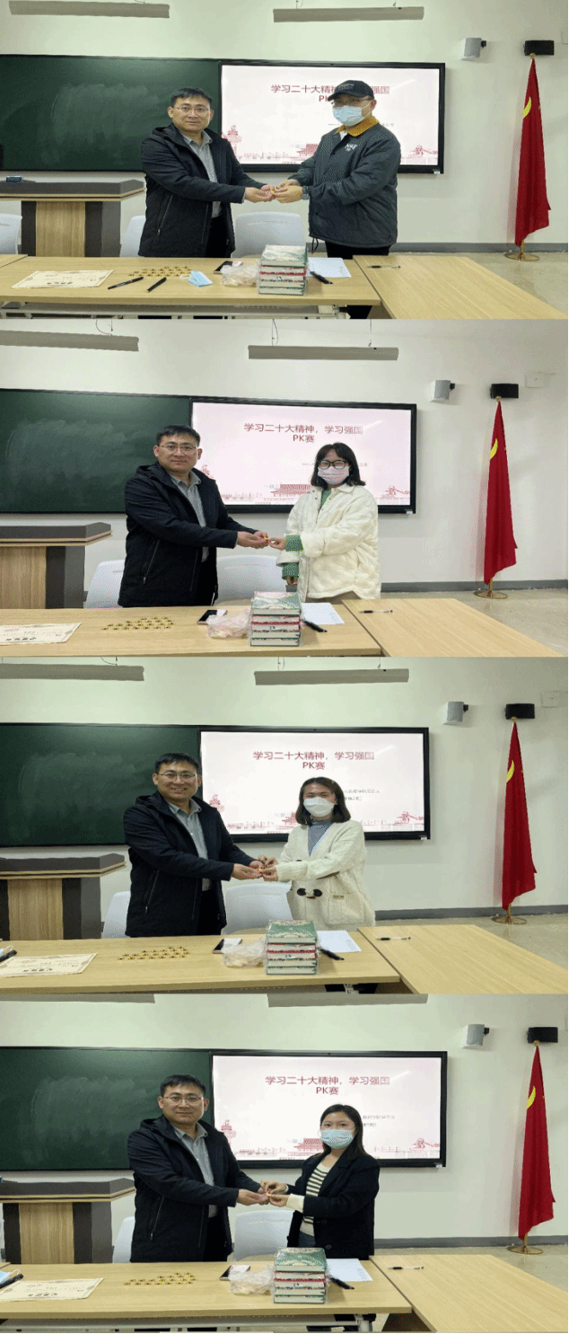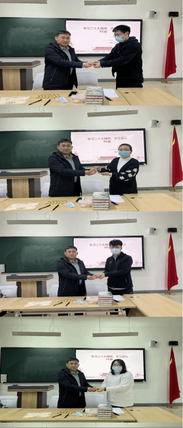 本次学习强国PK赛,由今年会jinnian官网党总支书记尹钧担任主持人,分教师党员和学生党员两支队伍参赛,每队十人。比赛分两轮进行,第一轮,自由PK,“学习强国”APP挑战答题赛。10分钟内,师生各队选出5名答题正确数量多者,进行第二轮PK。第二轮为狭路相逢,“学习强国”APP组队挑战答题赛,教师党员与学生党员两两组队进行学习强国答题比拼,最终学习强国答题分数高的五人获胜。