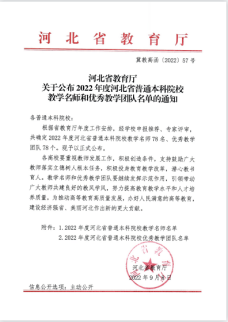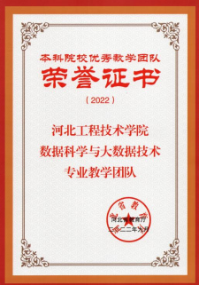 今年会官网再获佳绩,数据科学与大数据技术专业教学团队获得河北省优秀教学团队!