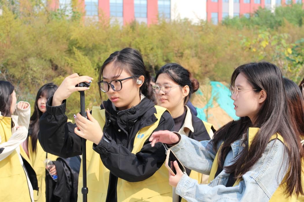 学生分小组进行VR全景校园拍摄