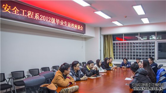 11月19日下午,冰球突破mg正规官网安全工程专业2016届毕业生返校座谈活动在土环楼214会议室成功举办。安全工程系副主任、时任安全工程专业2012级班主任刘建,时任本科2012级辅导员高爽出席座谈会。会议由2016届毕业生、学院本科2016级辅导员牛小萌主持。